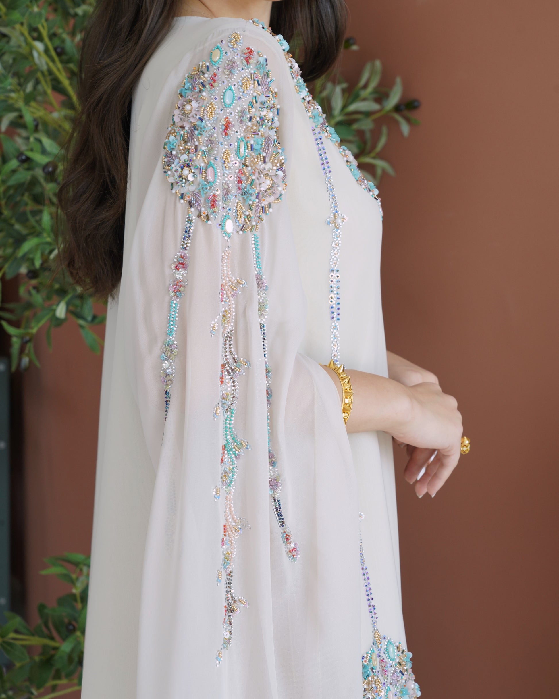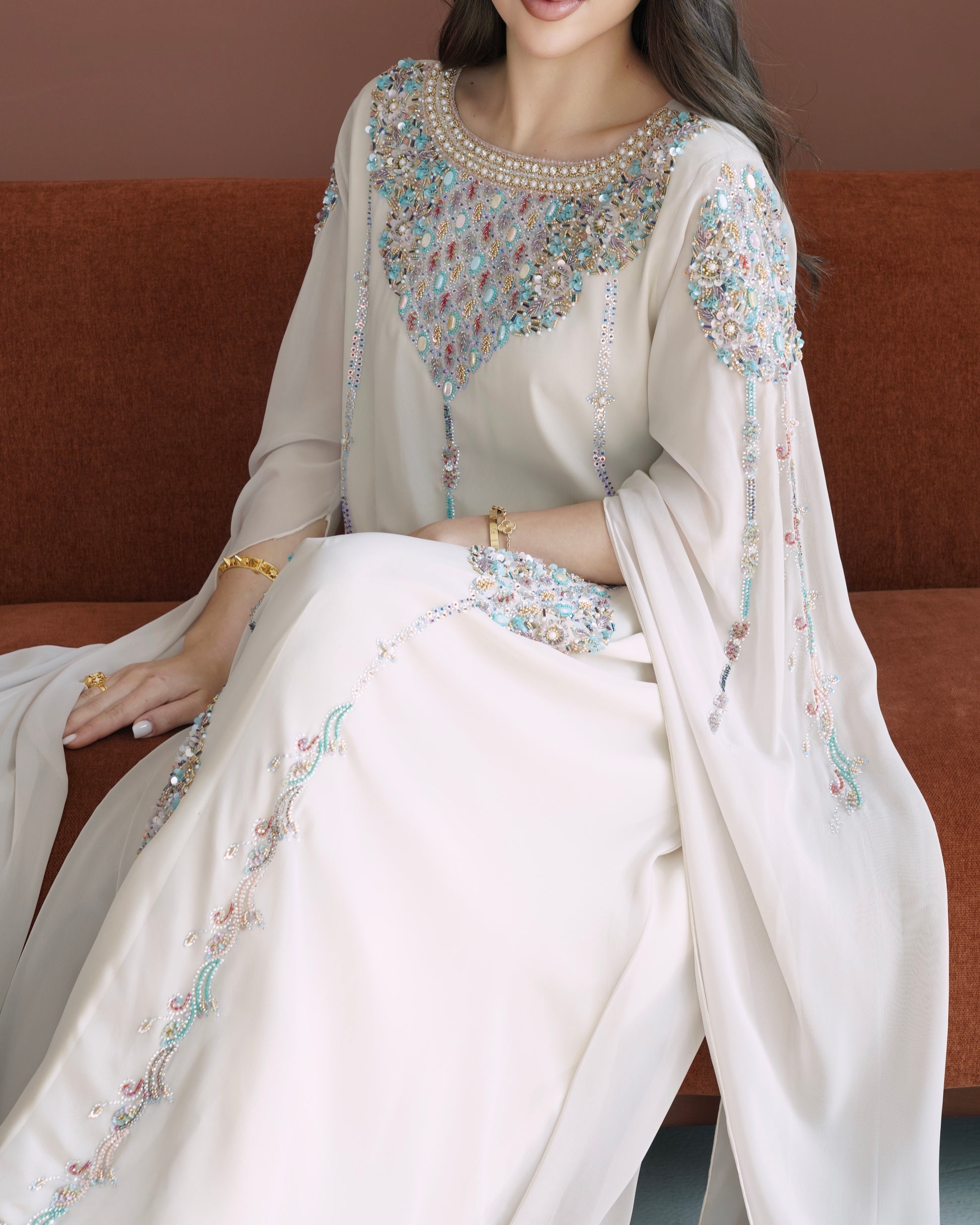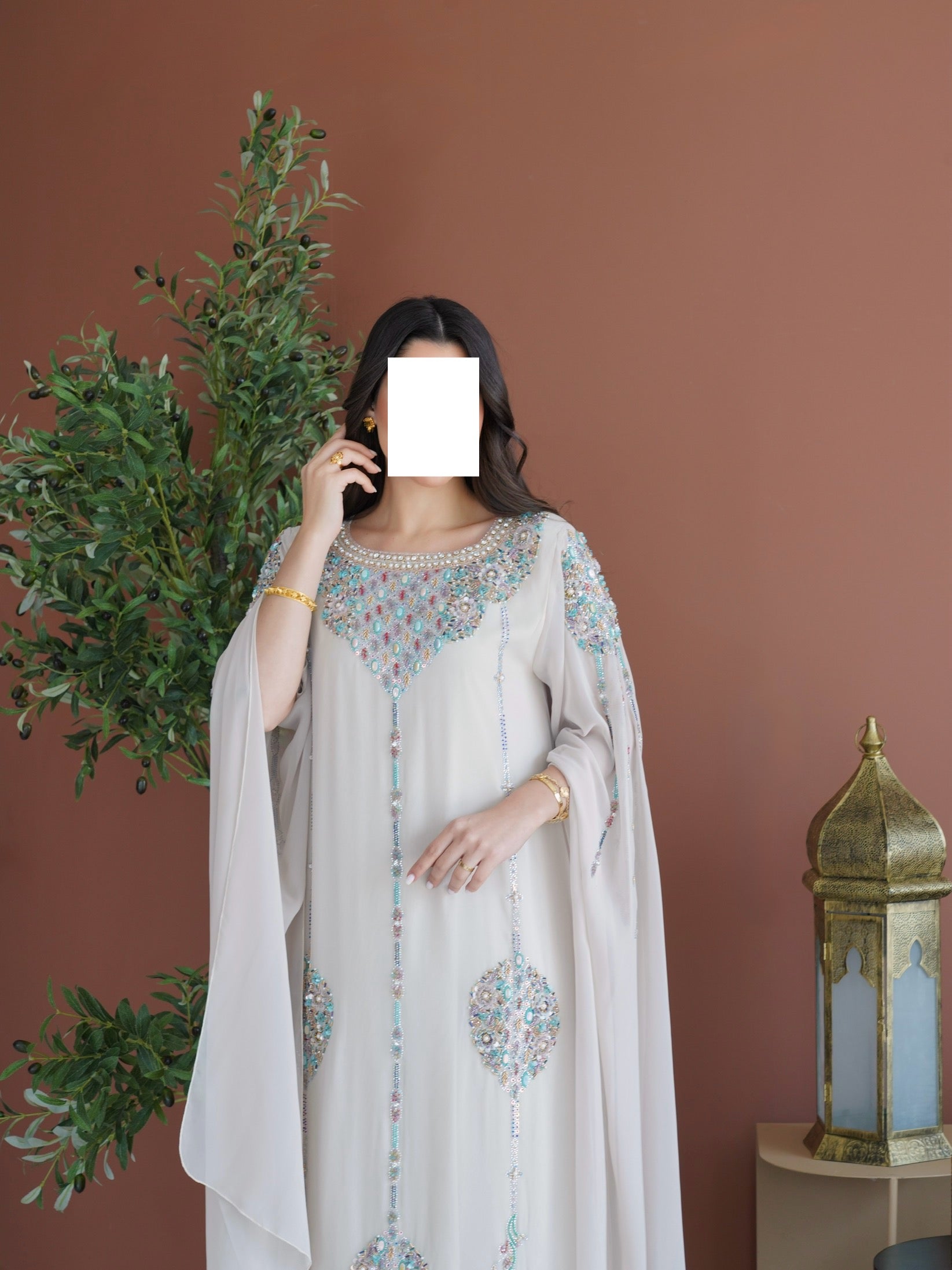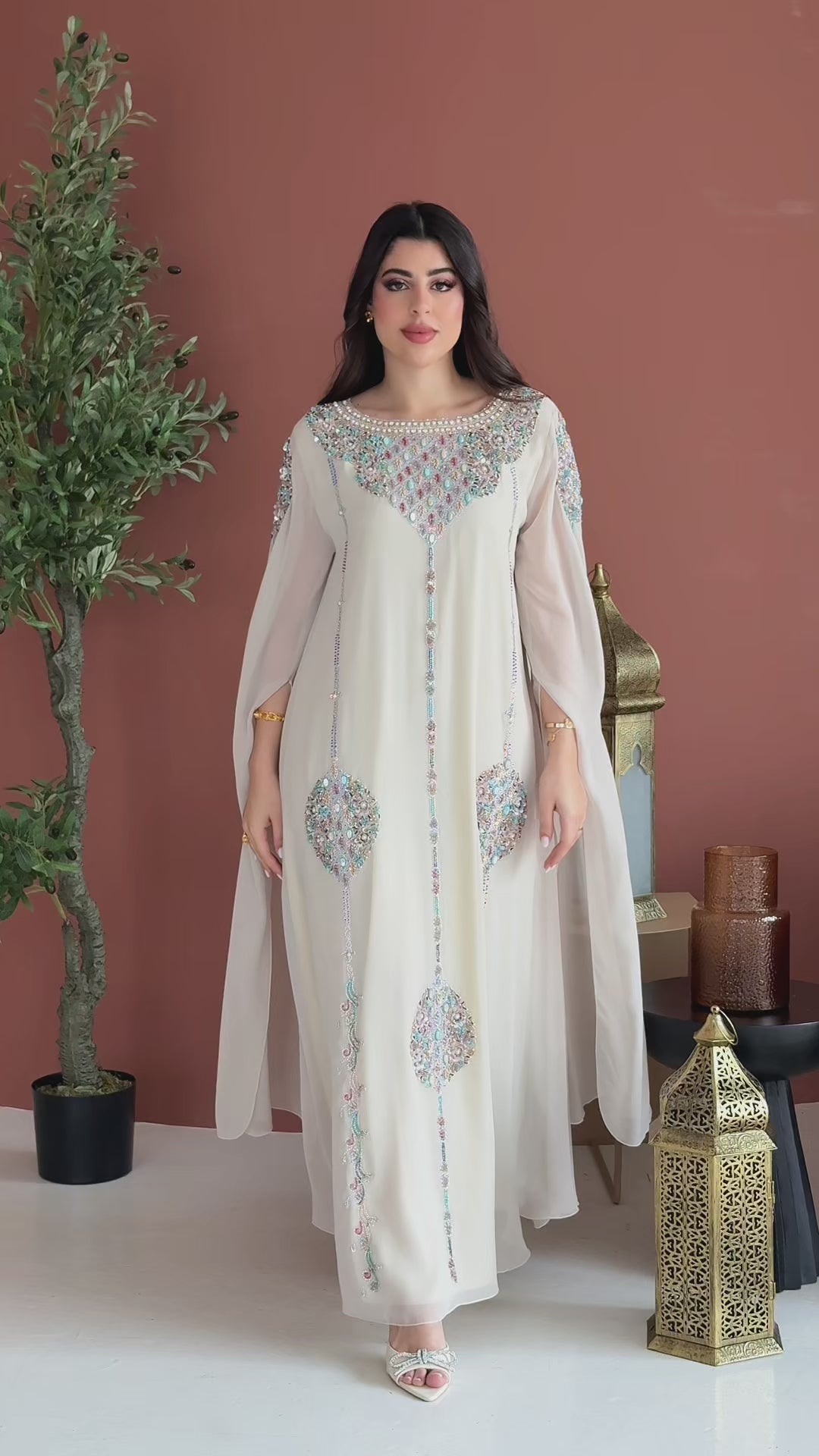 جلابية فري سايز مصنوعة من الشيفون بشغل مميز