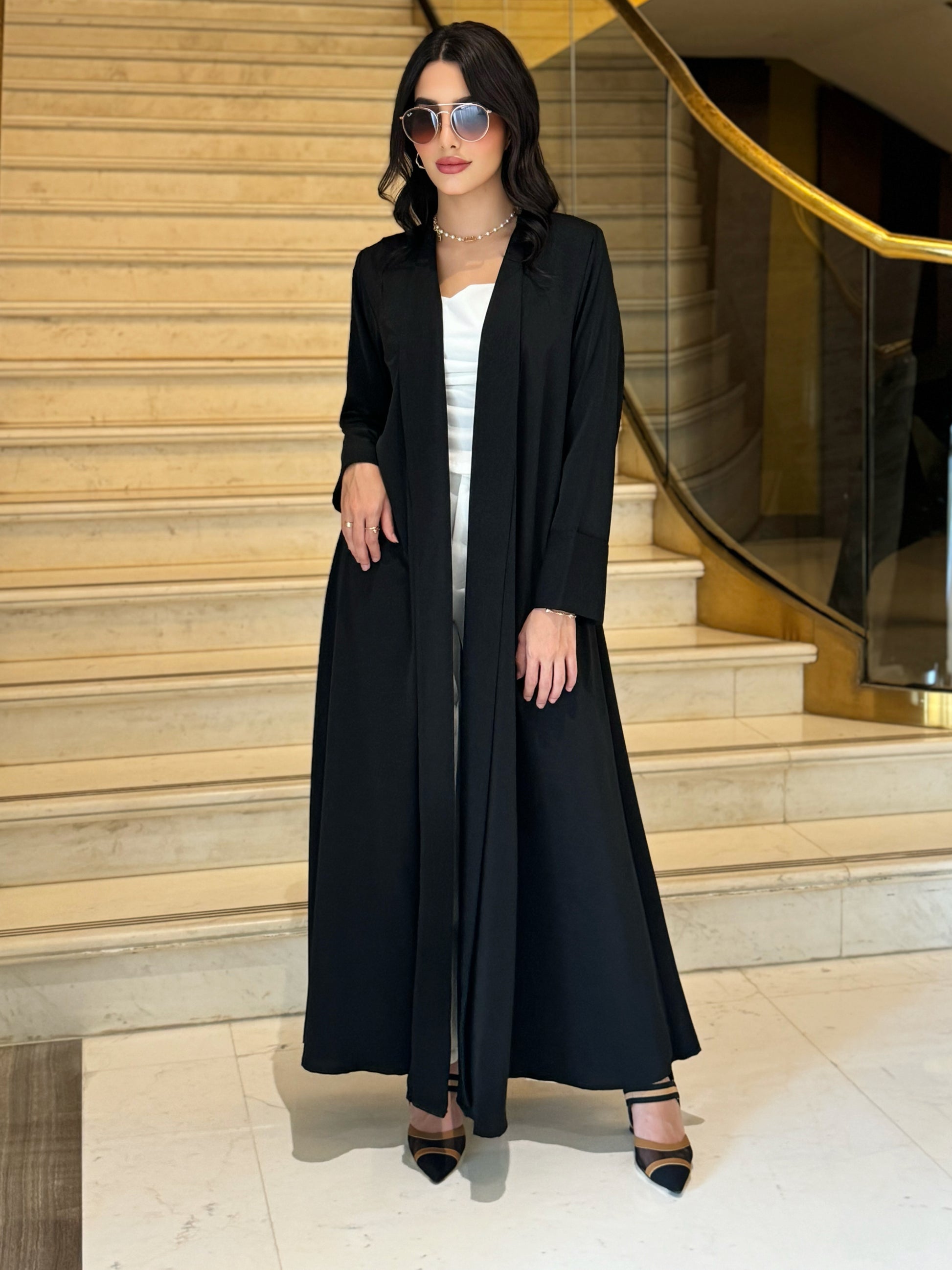 عباية بقصة كلوش مصنوعة من الكريب الناعم الفاخر مع شيلة