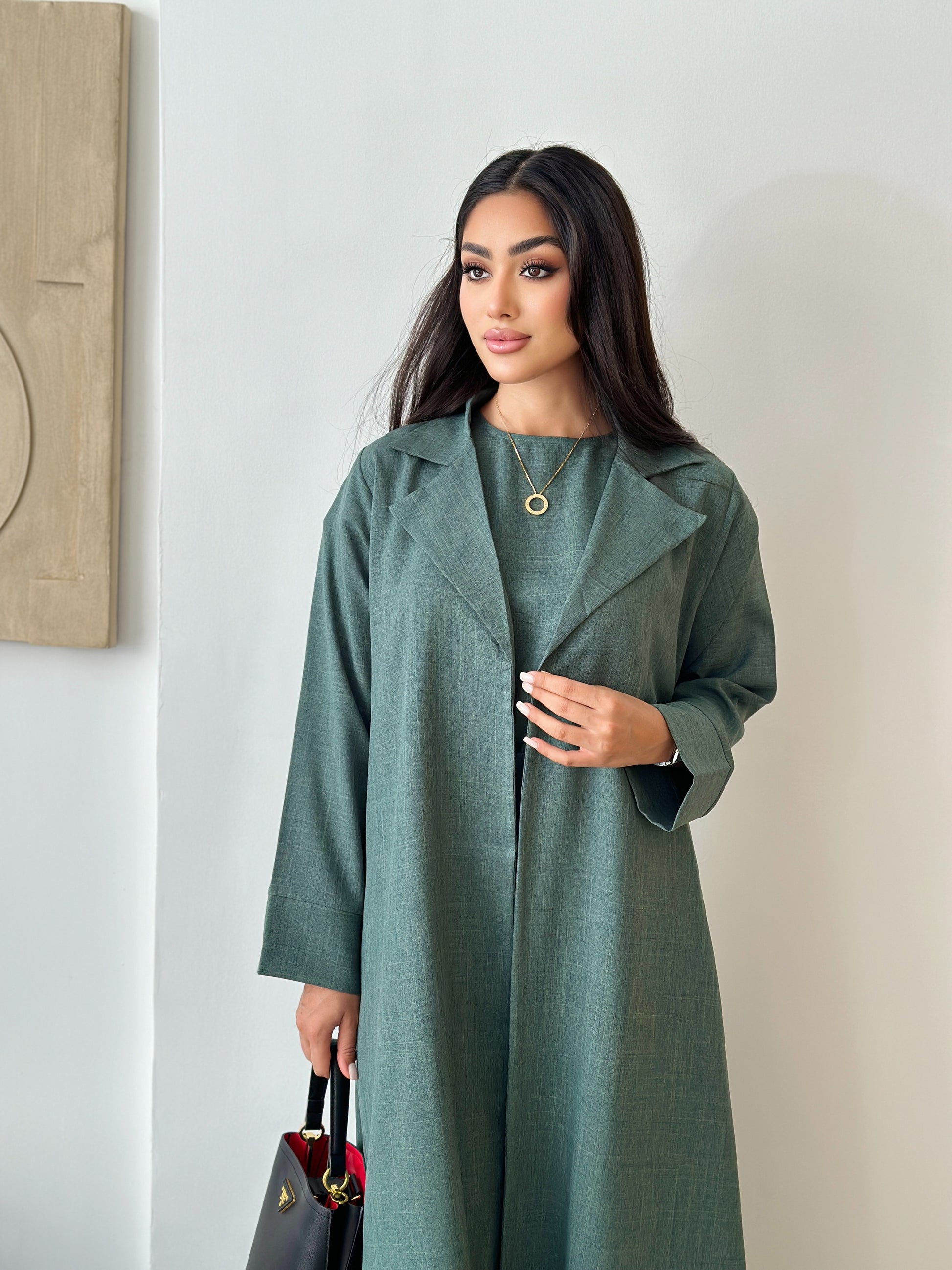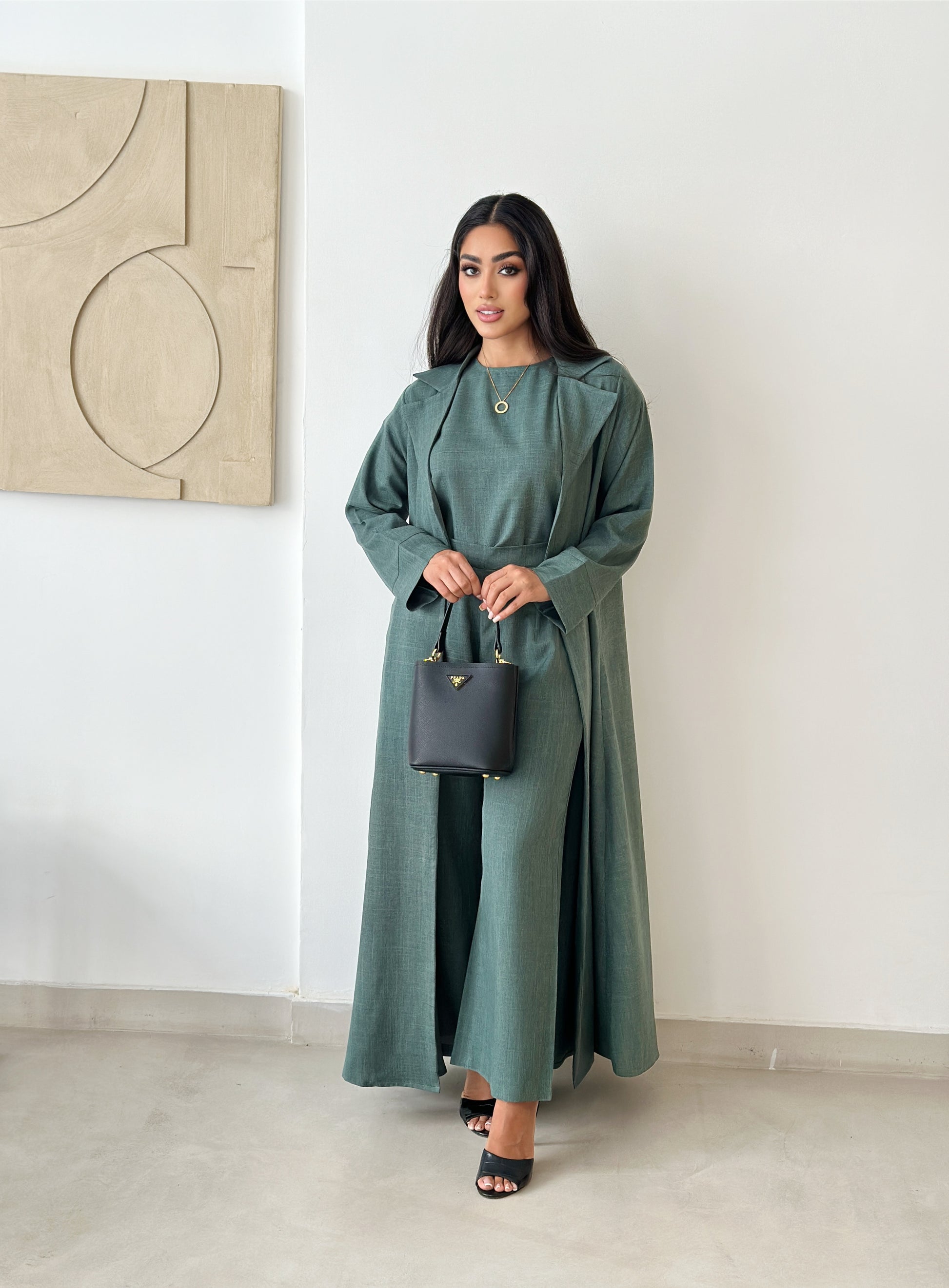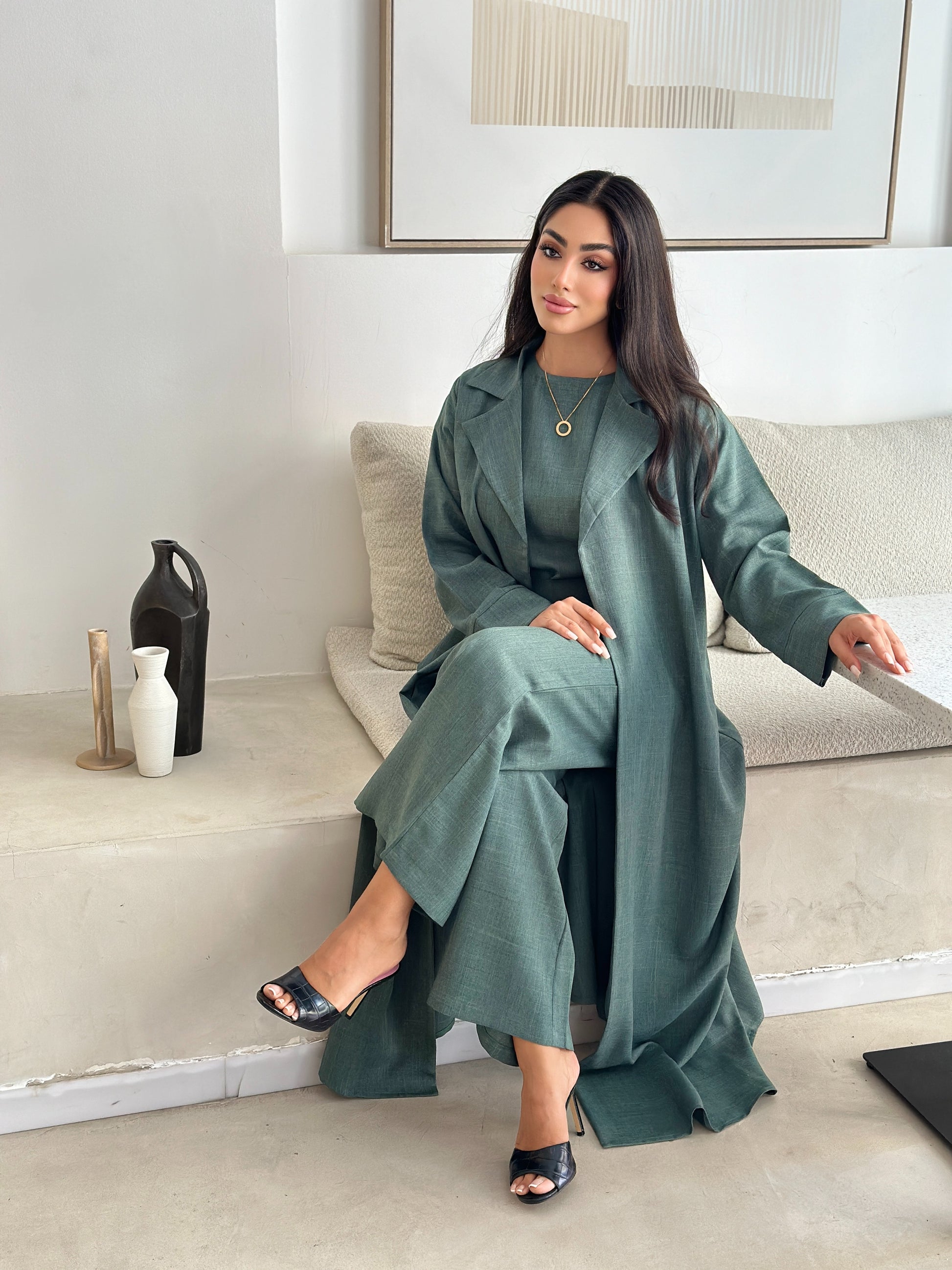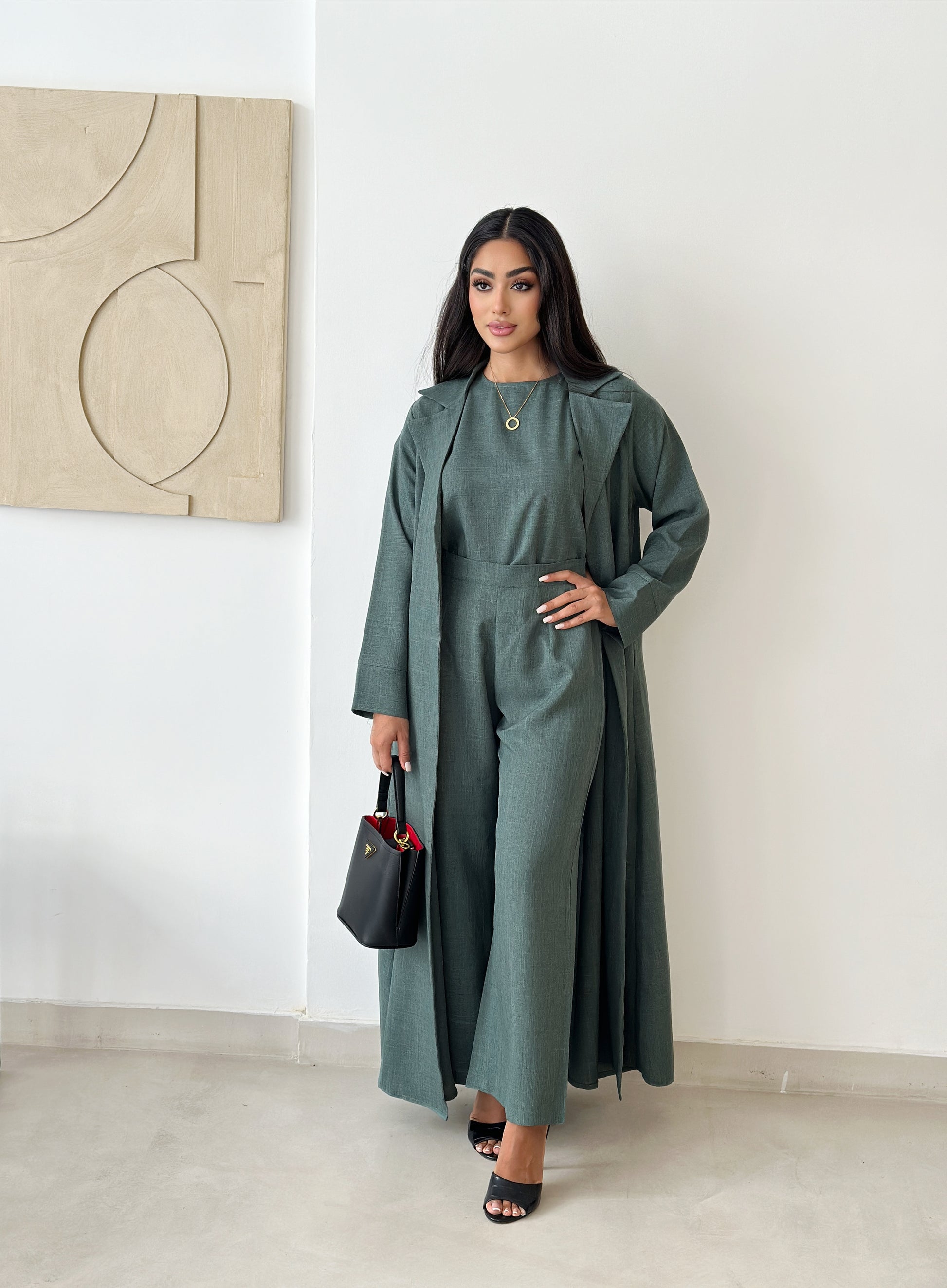 طقم سفر مصنوع من اللنن الفاخر الذي لا يتجعد بسهولة مكون من 3 قطع: بنطلون + توب + جاكيت